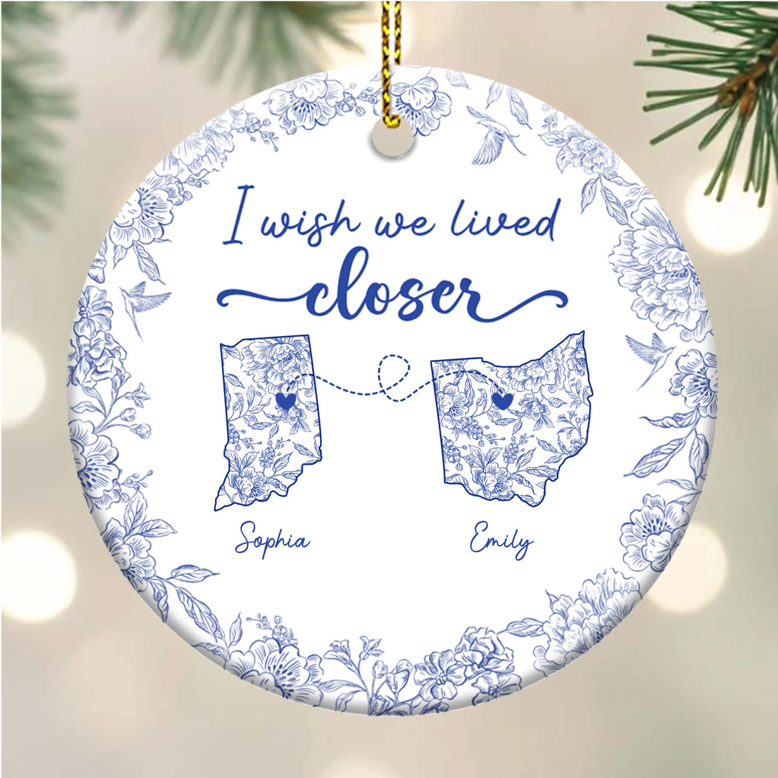 I Wish We Lived Closer - Personalized Circle Ceramic Ornament
