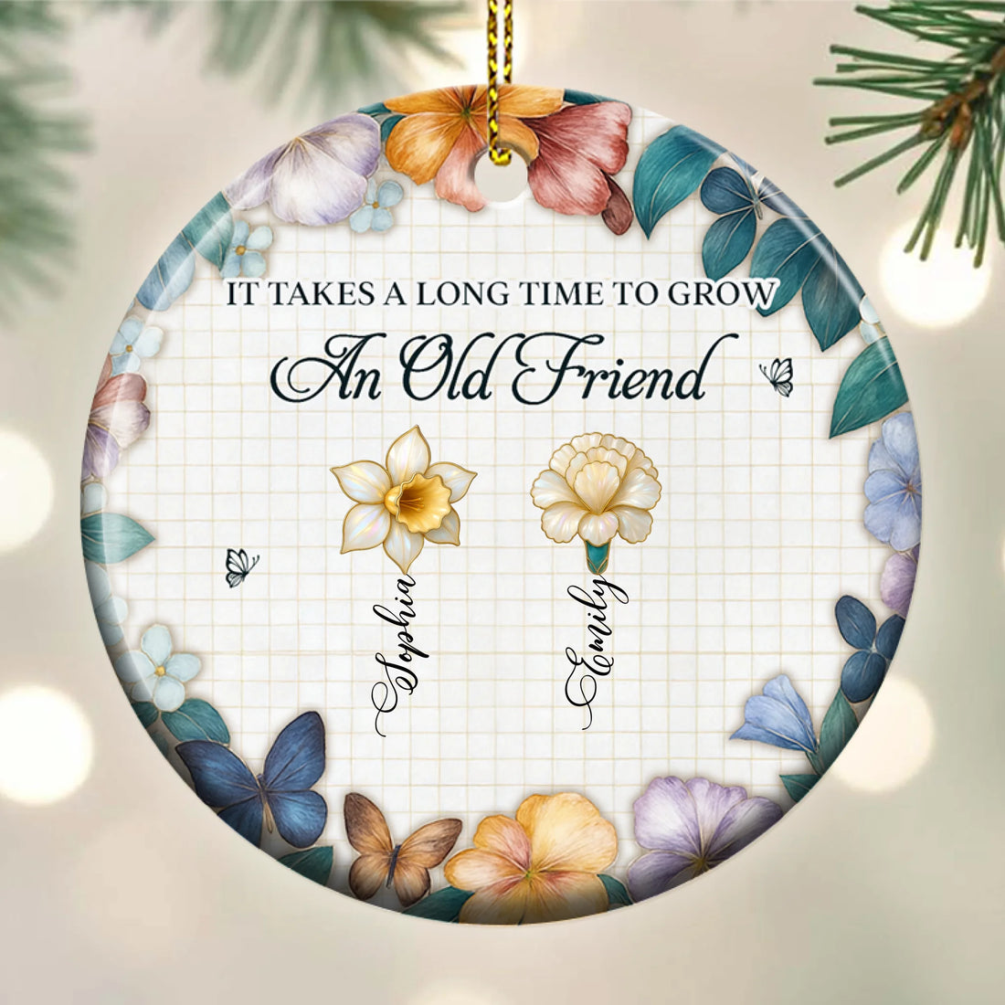 It Takes A Long Time To Grow An Old Friend - Personalized Circle Ceramic Ornament