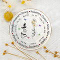 Package includes: 01 personalized round ceramic ring dish with gold rim and high-definition printed design.